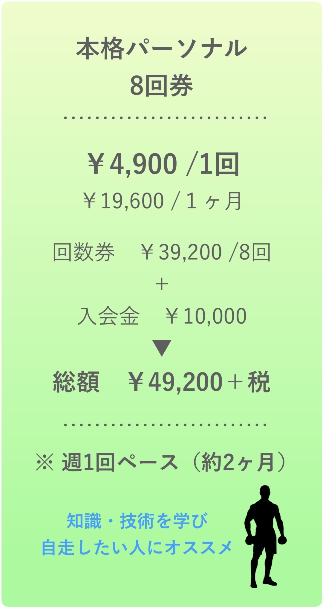 つまり、”贅沢品”であるパーソナルトレーニングを、相場の半分のコストで、お得に利用することができるわけです。